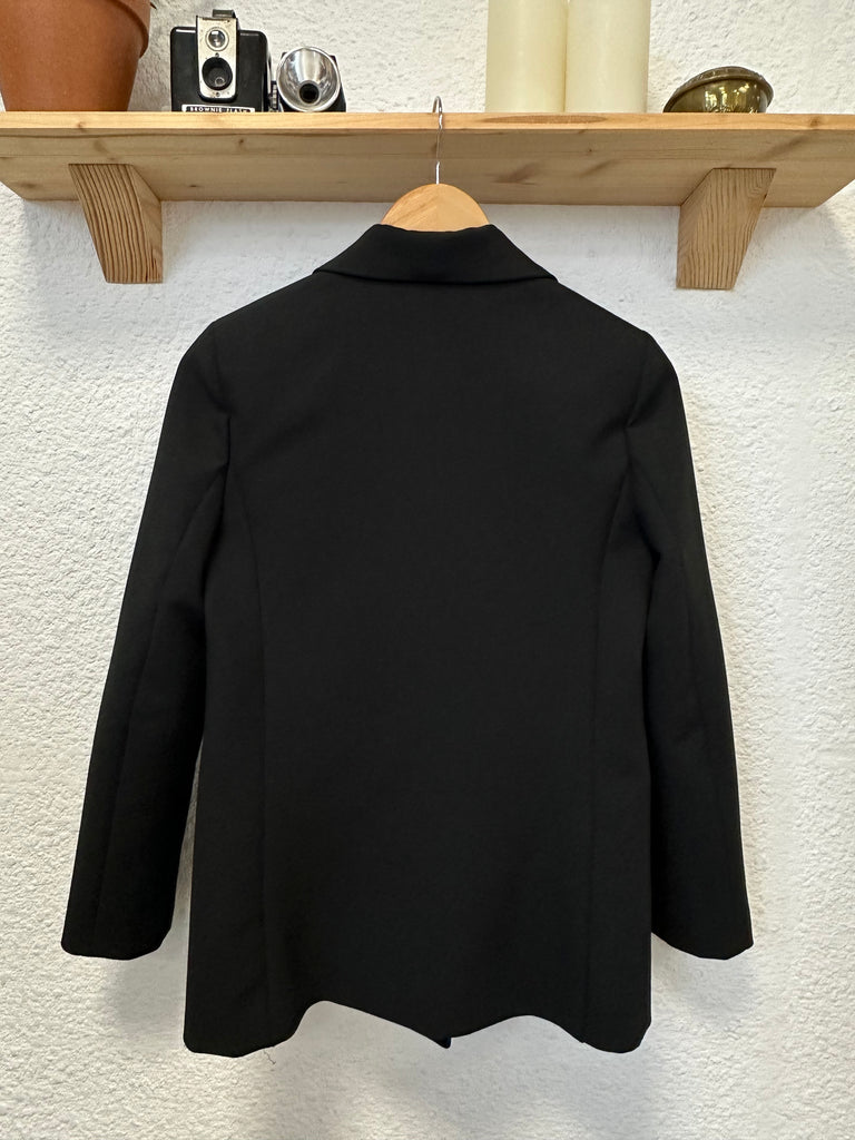 Blazer noir, coupe droite et fermeture croisé avec boutons dorés