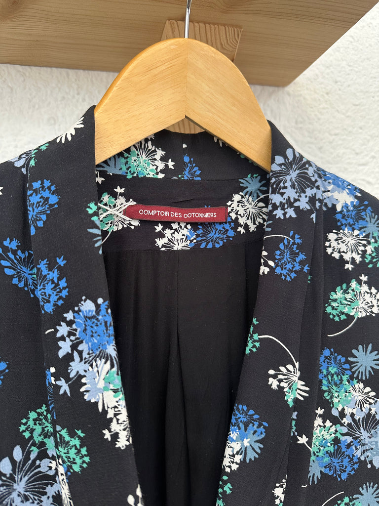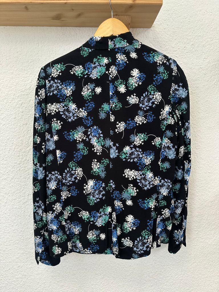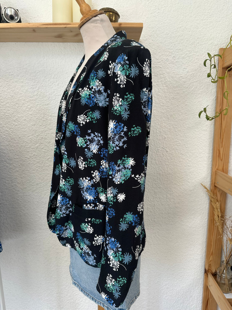 Blazer léger noir fleuri bleu