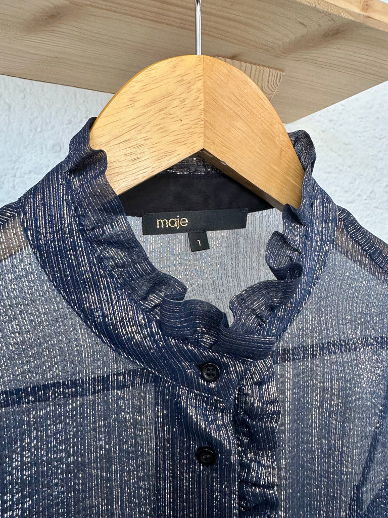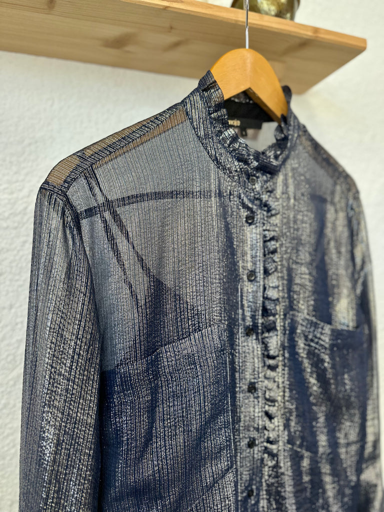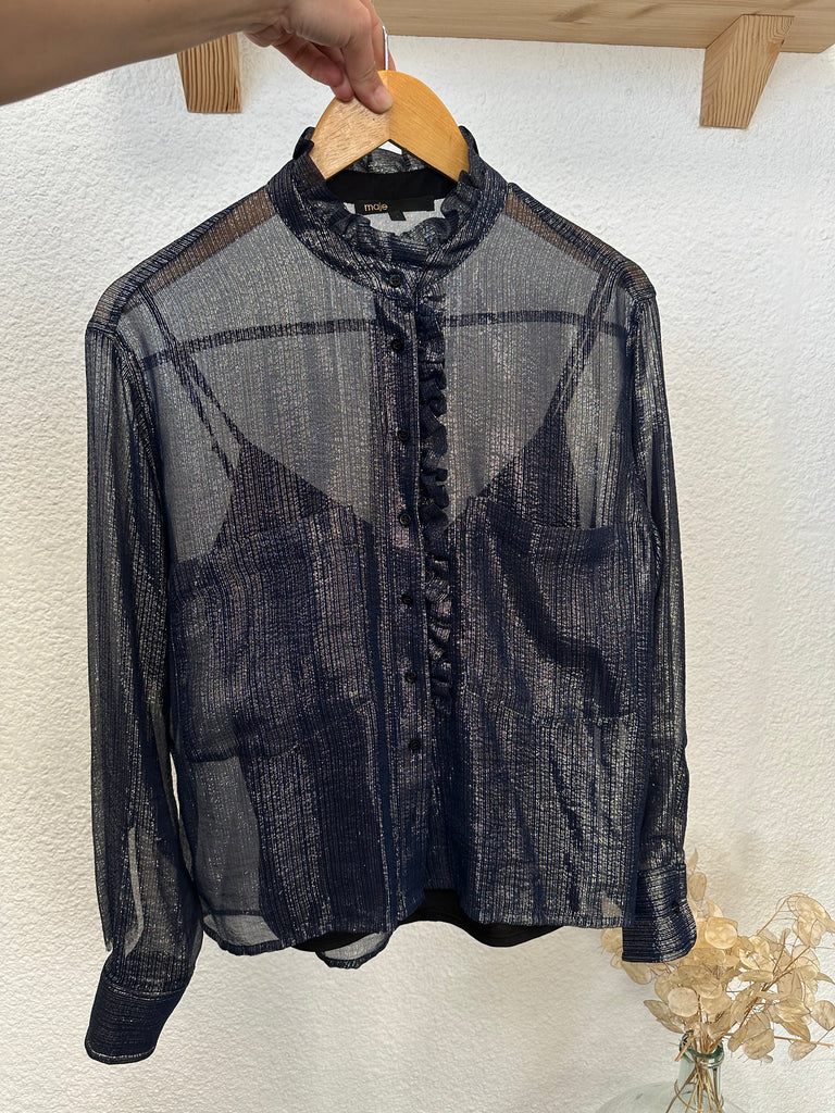 Chemisier en soie bleu métallisé Maje