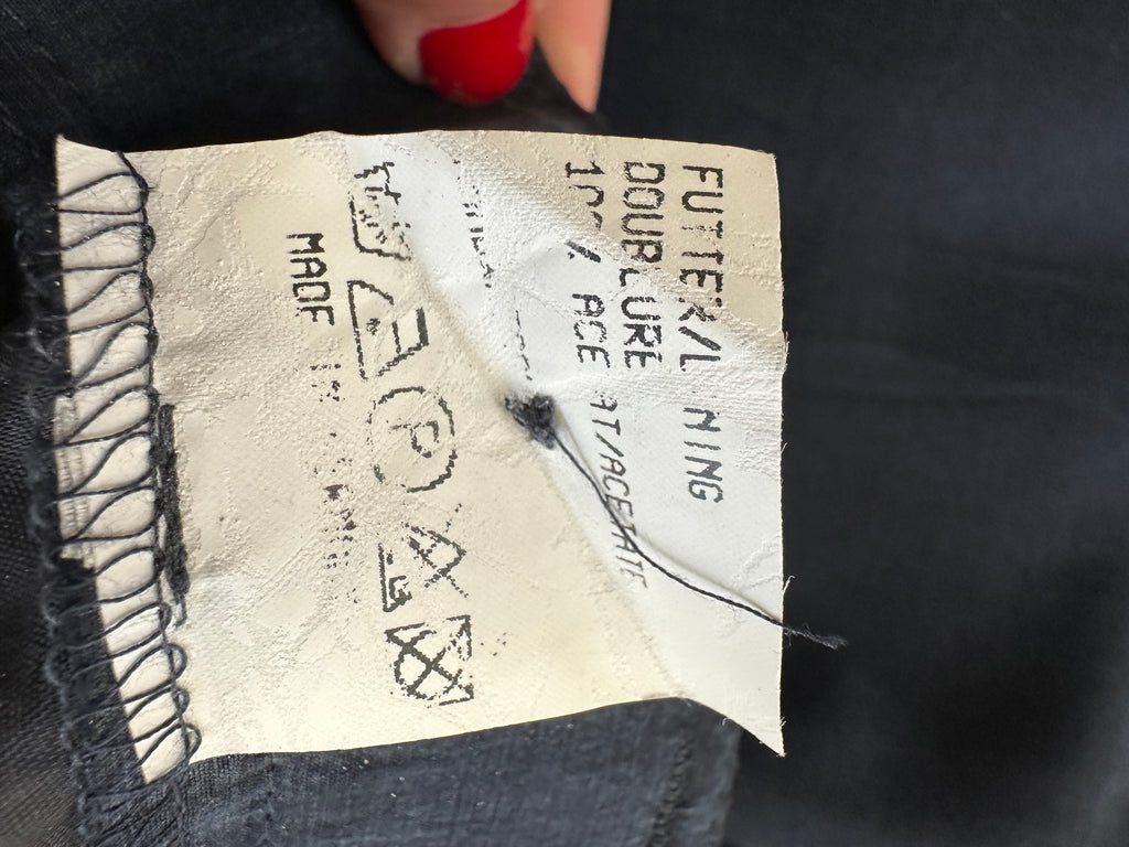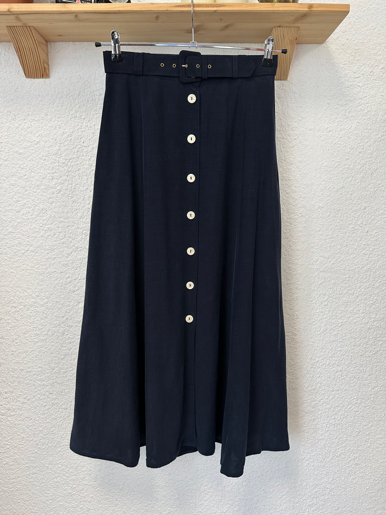 Jupe bleu nuit avec boutons nacrés blancs. Doublure