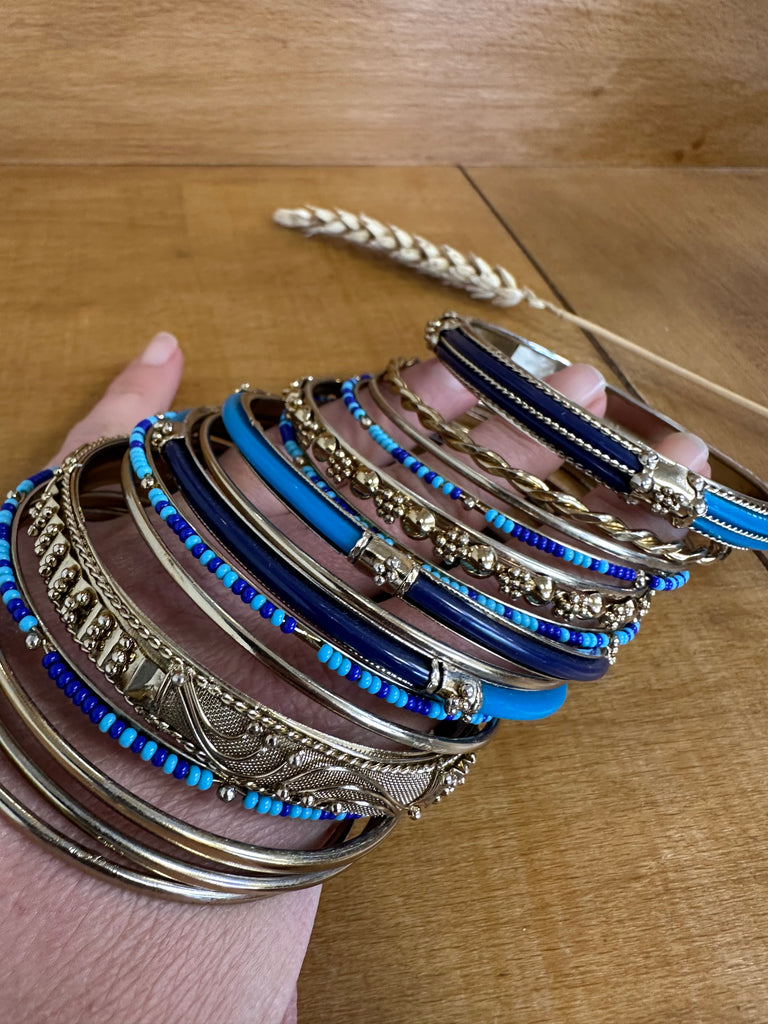 Ensemble de bracelets type bangle AMRITA SINGH en métal doré et perles bleu et marine.